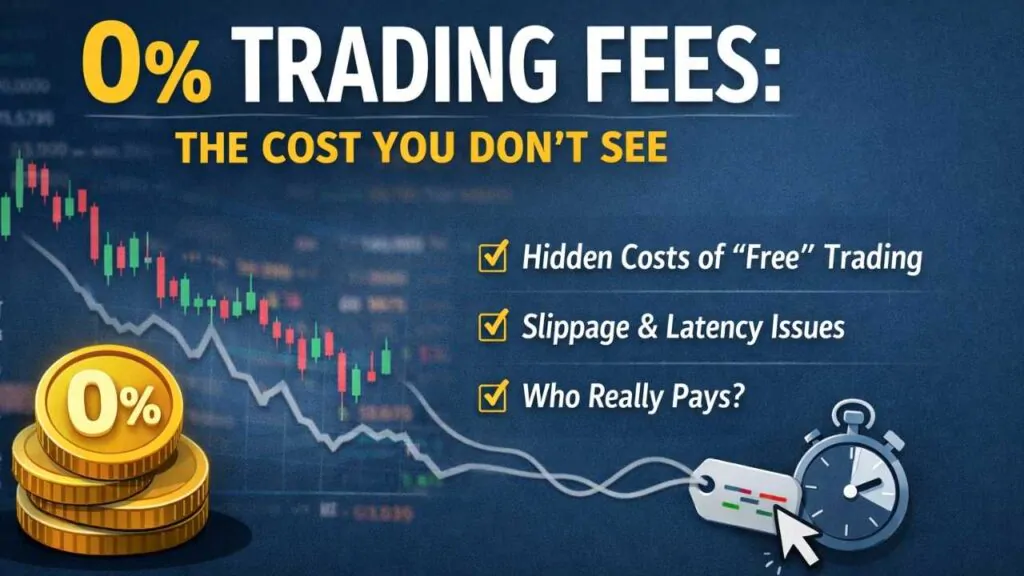 The core point is not that zero-fee platforms are bad. It is that 0% trading fees do not remove trading costs. They change how those costs are paid. Instead of commissions, traders pay through execution quality, timing, and order priority.