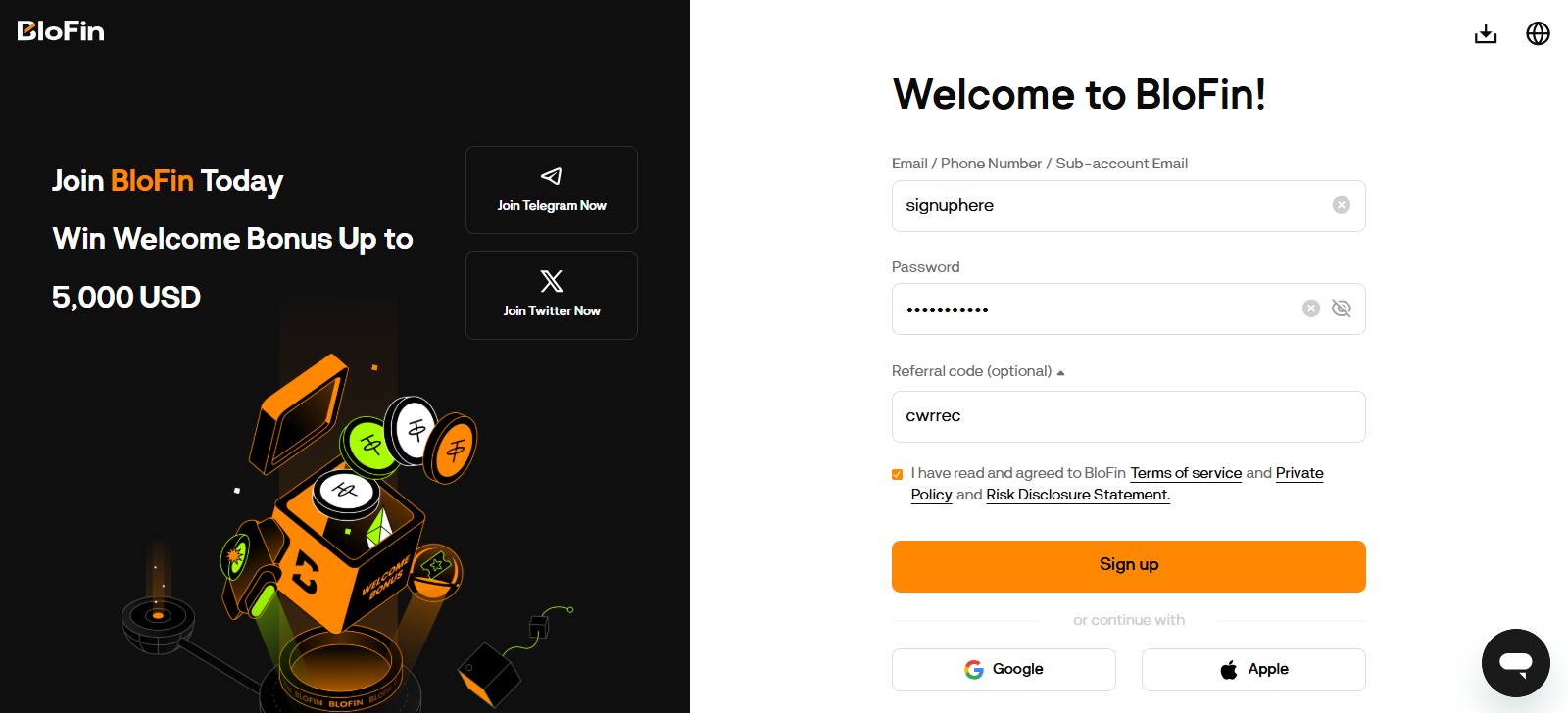 Step 1: Open your browser and go to the BloFin website. Sign up for an account if you don’t already have one.