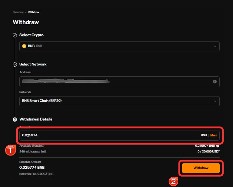 Step 6: Enter the amount of BNB you wish to withdraw to your MetaMask wallet and click “Withdraw”.