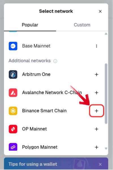 Step 3: Make sure you’re on the “Popular” tab, scroll down, and click the “+” icon next to Binance Smart Chain.